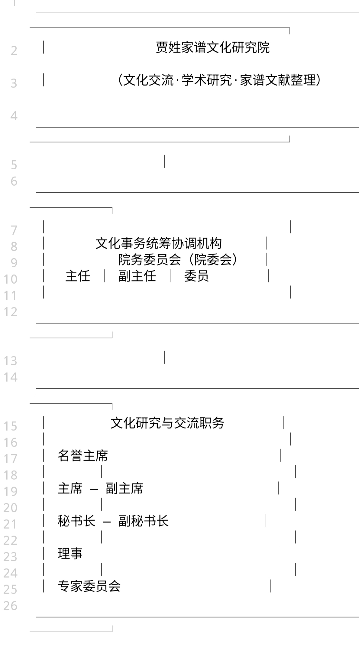 | 贾姓家谱文化研究院 组织架构 [文化交流·学术研究·家谱文献整理] 为系统推进贾氏源流考证、家谱文献整理、家风文化传承、姓氏文化研究及院内文化事务统筹工作,特设立院务委员会(院委会)作为文化事务统筹协调机构,搭建内部文化研究交流组织架构,全面统筹各项文化研究、学术交流与文献整理相关事务。 一、文化事务统筹机构:院务委员会(院委会) ★★★★★★★院委会主任 ★★★★★◐院委会副主任 ★★★★院委会委员 二、文化研究与对外交流职务体系 ★★★★★★★名誉主席 ★★★★★★主席 ★★★★★副主席 ★★★★秘书长 ★★★◐副秘书长 ★★★理事 ★★★专家委员会 三、合规声明 1. 本研究院院委会、主席、副主席、秘书长、理事、专家委员等所有职务,均为内部文化交流、学术研究、家谱文献整理、文化事务协调类非法定职务,不属于《公司法》规定的董事、监事、经理等法定治理职务,不具备社会团体、民办非企业、事业单位、官方行政机构属性。 2. 本机构唯一合法法律主体为贾姓家谱文化研究院山西有限公司。一切商事经营、合同签署、财务往来、发票开具、法律文件、招投标、对外备案等法定事宜,均以该公司工商登记信息及法定代表人、执行董事、经理等法定职务为准。 3. 本架构仅用于文化研究、学术交流、文献整理、对外文化展示,不涉及任何行政职能、公益募捐、官方认证、行政审批等事项,不代表任何政府、社团、公益组织身份。 4. 任何单位或个人不得以研究院文化职务名义签署法律文件、开展商事活动,所有对外合作、业务洽谈均以公司全称及法定授权代表为准。 ![]() 院务委员会(院委会)为文化事务统筹协调机构,仅负责学术研究、文化交流、家谱文献整理等非经营性事务协调,不参与公司商事经营决策;所有文化类职务均非法定工商职务,本平台法律主体为贾姓家谱文化研究院山西有限公司,一切商事事宜以公司法定主体及职务为准。 特此公示! 贾姓家谱文化研究院(山西)有限公司 2026年4月28日 |
